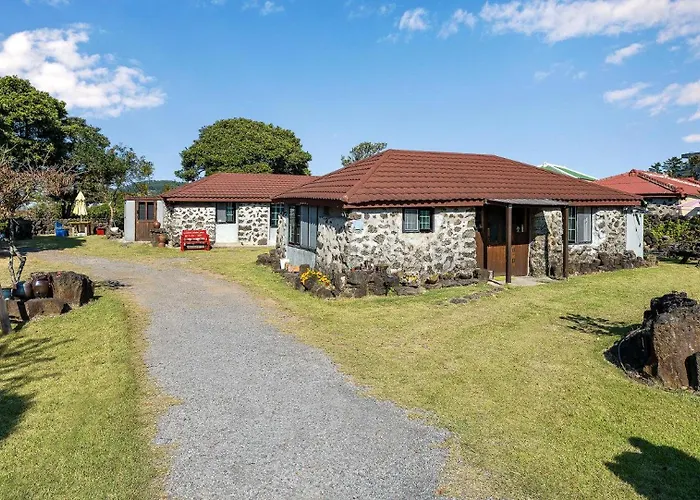 Jeju Motungedoljib Dogchaepension villa is located approximately 7 km from Hallim Stadium, giving access to various tourist spots nearby.